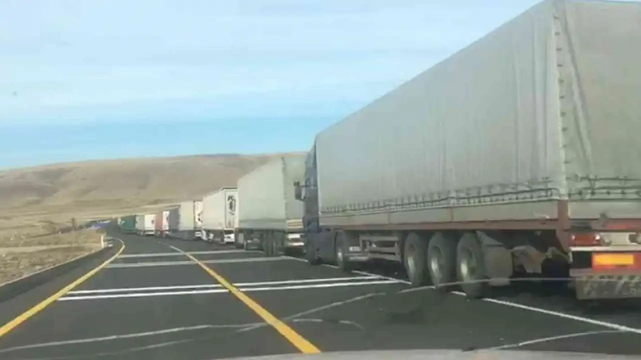 Türkiye'nin Gürcistan üzerinden Kafkas ülkelerine açılan Ardahan'ın Çıldır ilçesindeki Aktaş Gümrük Kapısında tır kuyruğu devam ediyor.