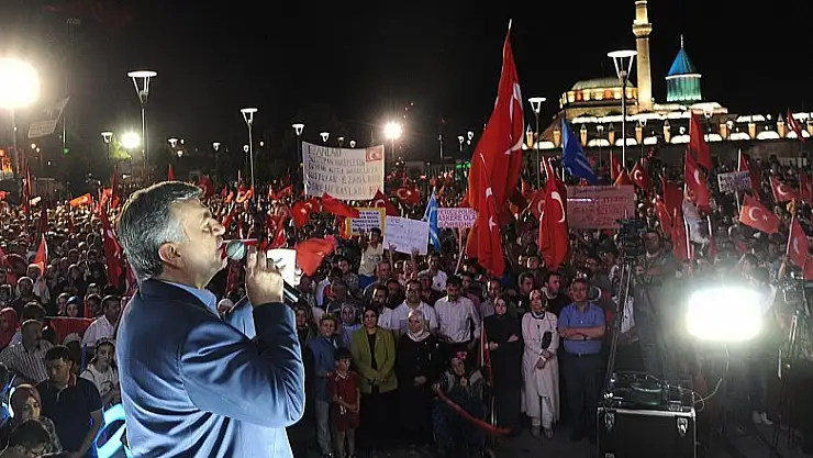 Konya Büyükşehir Belediye Başkanı Tahir Akyürek, darbe girişiminin dördüncü gününde de meydanları dolduran on binlerce Konyalı ile bir araya geldi.