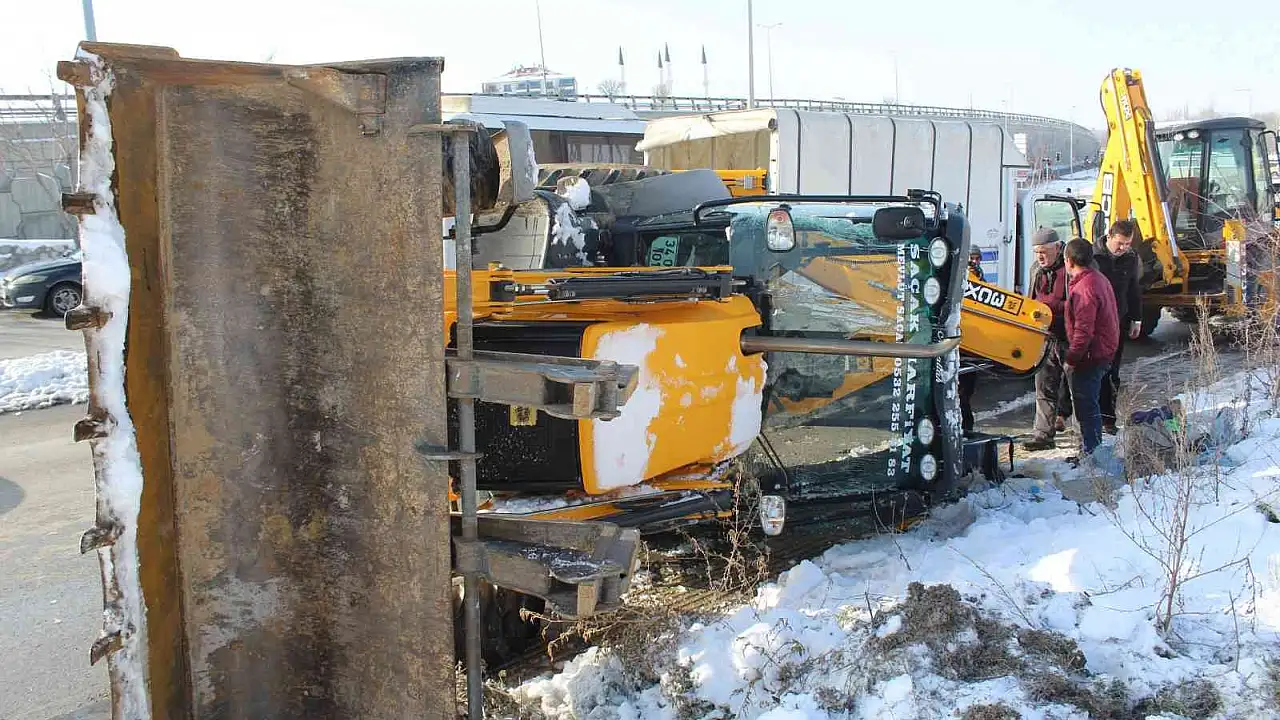 Akyurt'ta kontrolden çıkan kepçe devrildi