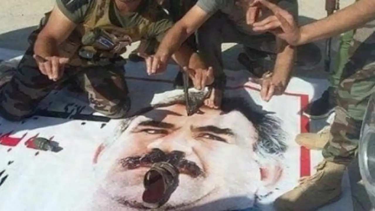 Abdullah Öcalan'ın büyük bir posterini sökerek yere atan Türkmenler, üzerine bastıkları Öcalan resmiyle pos vererek sosyal medyada paylaştı. Haberler.com'da yer alan habere göre Türkmenlerin, Öcalan'ın yüzünün üstüne bir de terlik koyduğu görüldü. Irak'ta birine terlikle vurmak, aşağılama ifadesi olarak kullanılıyor.
