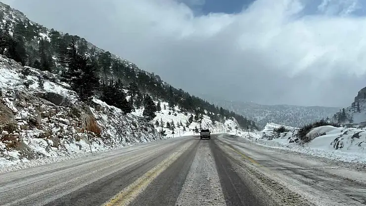 Antalya- Konya yolunun Akseki-Seydişehir geçişindeki 1825 rakımlı Alacabel Geçidi'nde kar yağışı etkisini gösterdi.