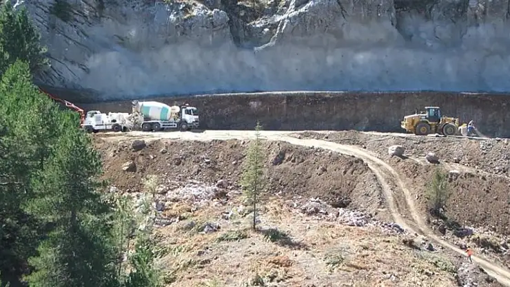Seydişehir- Antalya karayolu üzerinde yapımına başlanan 7 bin 300 metre uzunluğundaki Alacabel Tüneli için yapım çalışmaları sürüyor