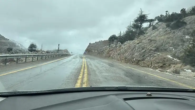 Konya'yı Antalya'ya bağlayan Alacabel'de yağmurla karışık kar yağışı başladı.