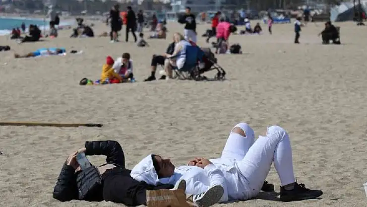 Antalya'da soğuk havaların ardından güneşli havayı fırsat bilenler plaja akın etti.