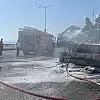 Alev alan bisküvi yüklü tırın dorsesi kullanılamaz hale geldi