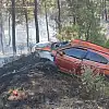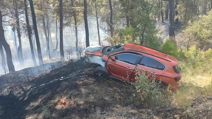 Alev alan otomobilin girdiği orman da yandı
