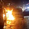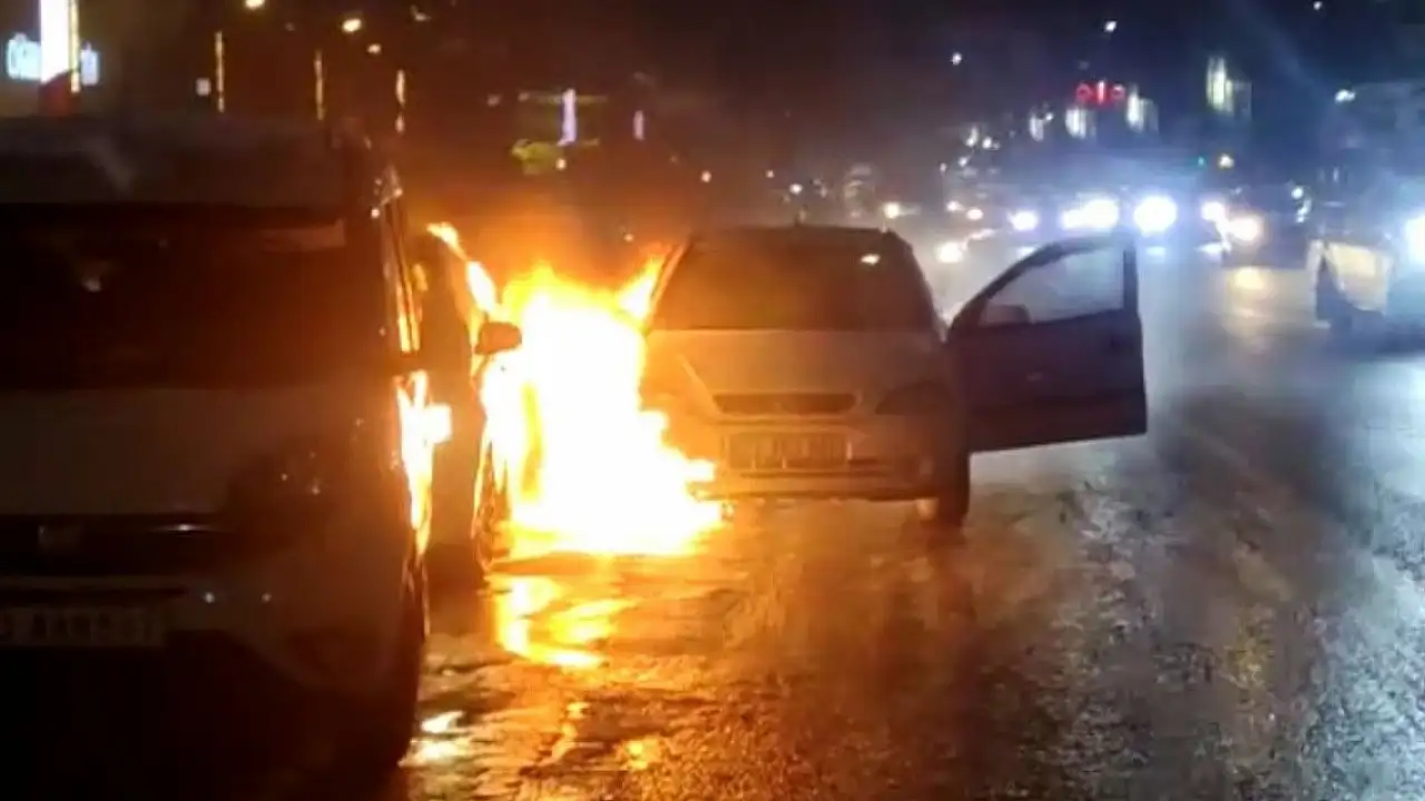 Alev alev yanan otomobili yol kenarına çekti, park halindeki otomobili de yaktı