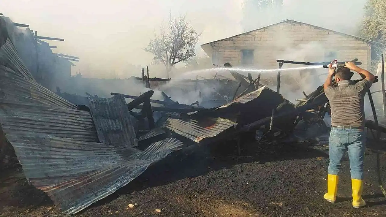 Alevlere teslim olan ahır ve samanlık küle döndü