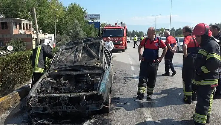 Denizli'de Ankara yolu üzerinde hareket halindeki otomobil, bir anda alev aldı.