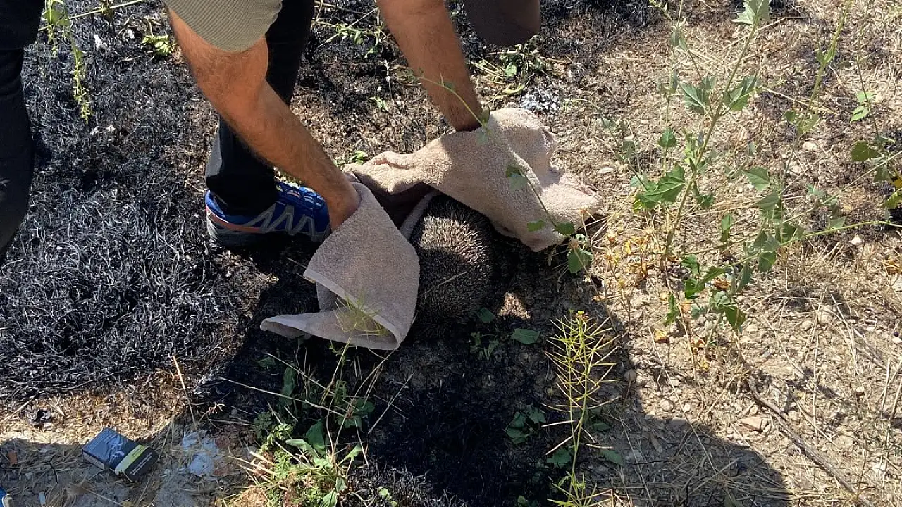 Mehmet Paşa Mahallesi Karabağ Caddesi'nde otluk alanda, saat 12.30 sıralarında yangın çıktı. Durumu itfaiyeye bildiren çevredekiler, su dolu bidonlarla alevlere müdahale etti. Bu sırada Serdar Korkmaz, alevlerin arasında bir kirpiyi fark etti. Korkmaz, havluya sardığı kirpiyi kurtardı. Evine götürüp, kirpiye su tutan Korkmaz, bir süre baktıktan sonra doğal ortamına saldı.