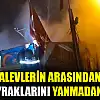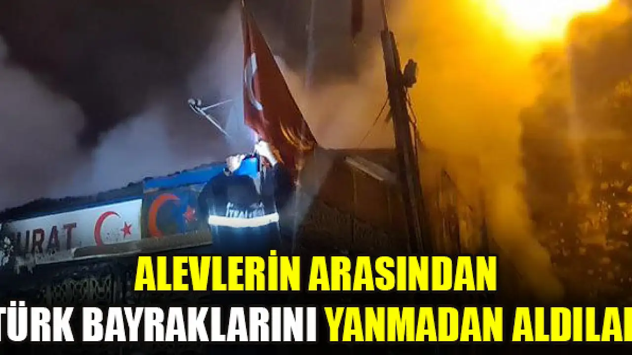 Alevlerin arasından Türk bayraklarını yanmadan aldılar