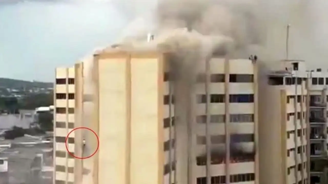 El Salvador'da Maliye Bakanlığı binasında çıkan yangında bir kişi, kendini boşluğa bıraktı.