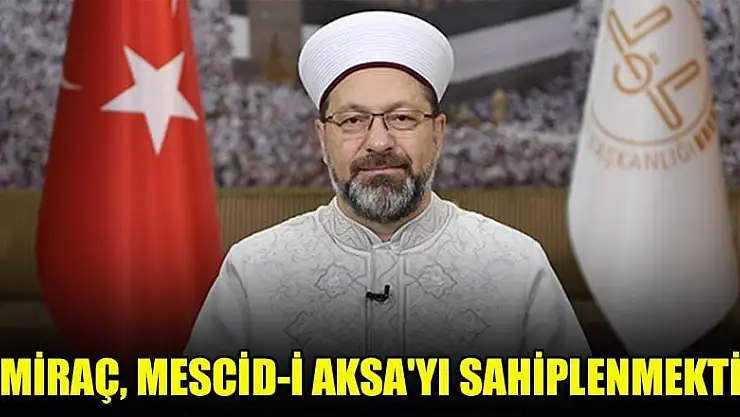 Diyanet İşleri Başkanı Ali Erbaş, 'Miraç, Mescid-i Aksa'yı peygamberlerin bir emaneti, kulluk ve insanlık sınavının bir gereği olarak sahiplenmektir.' ifadesini kullandı.
