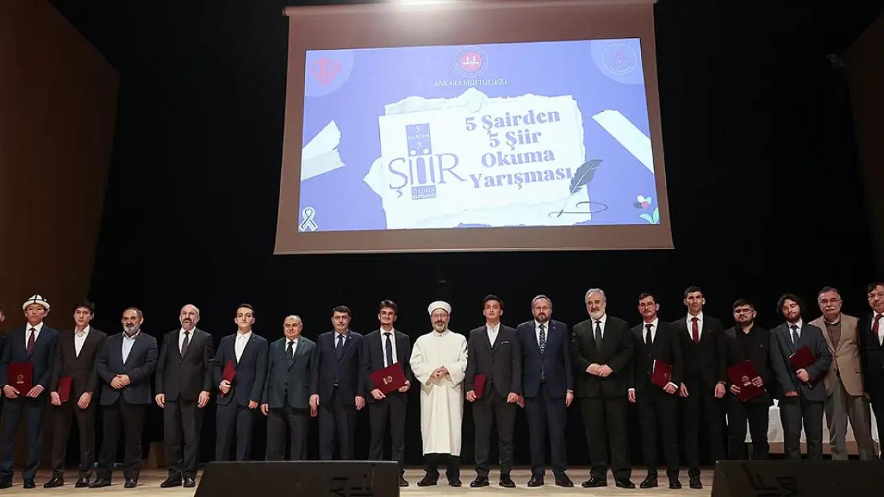 Diyanet İşleri Başkanı Ali Erbaş, Ankara Müftülüğü tarafından Melike Hatun Camisi Konferans Salonu'nda düzenlenen "5 Şairden 5 Şiir Okuma Yarışması Ödül Programı'na katıldı. Programda Erbaş'ın yanı sıra Ankara Valisi Vasip Şahin ile Ankara İl Müftüsü Hasan Çınar da bulundu. Etkinlik Kur'an-ı Kerim tilavetinin ardından başladı. Diyanet İşleri Başkanlığı'nın yürüttüğü ve hayata geçirdiği çeşitli çalışmaların görüntüleri salondaki konuklarla paylaşıldı. Erbaş, tarihte nice şairin, şiirleri aracılığıyla insanların kalbine girdiğine ve düşünceleriyle dimağlarda silinmez izler bıraktığını kaydederek, şunları söyledi: