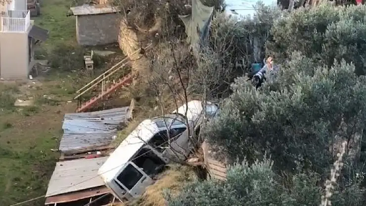 BURSA'da alkollü sürücünün direksiyon hakimiyetini kaybettiği kamyonet, 50 metre yükseklikten bir sitenin bahçesine uçtu.