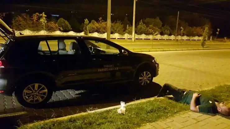 Nazilli'de alkollü olduğu iddia edilen 2 kişi eve dönüş yolunda araçlarının patlayan lastiğini değiştirirken otomobilin başında sızıp kaldı.