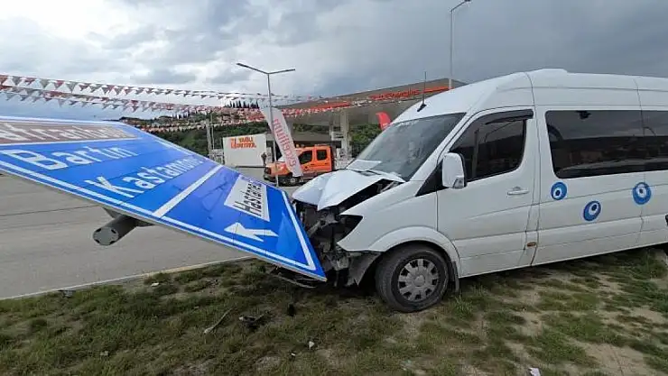 Karabük'te yoldan çıkan minibüs yön tabelasına çarptı. Kaza sonrası olay yerine gelen trafik ekiplerinin kontrolünde sürücünün 2.51 promil alkollü olduğu belirlendi.