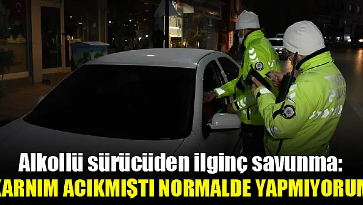 Aksaray'da 1.18 promil alkollü araç kullanırken polise yakalanan sürücü, 'Karnım acıkmıştı, yemek yemeye çıkmıştım. Normalde yapmıyorum' diyerek kendini savundu.
