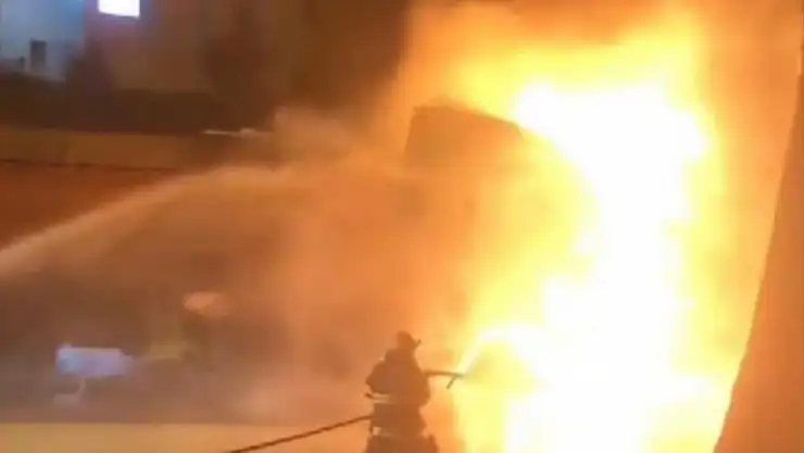 Kazanın ardından alev topuna dönen tırda meydana gelen patlamalar çevredeki vatandaşlar tarafından cep telefonu kamerası ile kaydedildi.