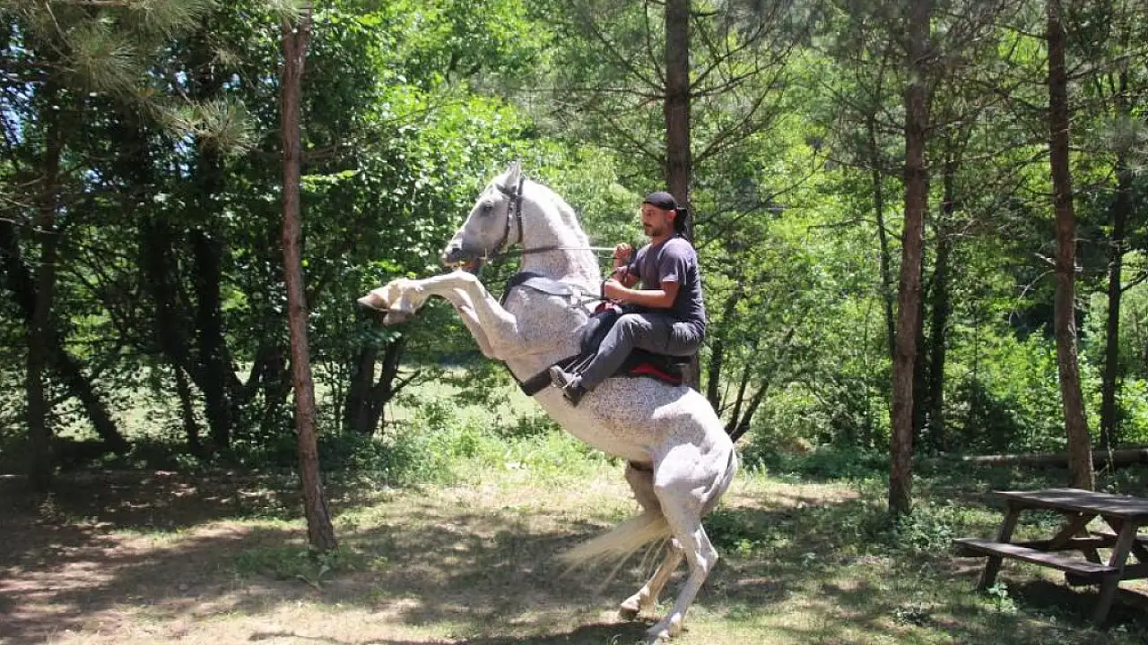 Bolu'da 'Allah' denilince şaha kalkan at, sosyal medyada ilgi odağı oldu.