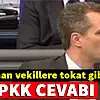Bystron, "Türkiye, Almanya'nın terör örgütü olarak gördüğü PKK'nın uzantısı YPG ile savaşıyor. Sizin derdiniz ise Marksist PKK'lı dostlarınızın vurulması. İllegal gruplar üzerinden para toplayıp, silah alarak PKK'ya yardım ediyorsunuz" sözleriyle terör örgütünü simgeleyen fularla meclise gelmelerine tepki gösterdi.