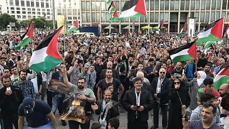 Almanya’nın başkenti Berlin'de, İsrail'in Mescid-i Aksa'ya yönelik ihlallerine tepki göstermek amacıyla protesto düzenlendi.
