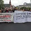 "Mülteci yasasının sertleştirilmesi yerine açık sınırlar ve dayanışma" temasıyla düzenlenen yürüyüşte, "Hiçbir insan illegal değildir", "Mülteciler Almanya'da hoş karşılanacaklar" şeklinde sloganlar atıldı.