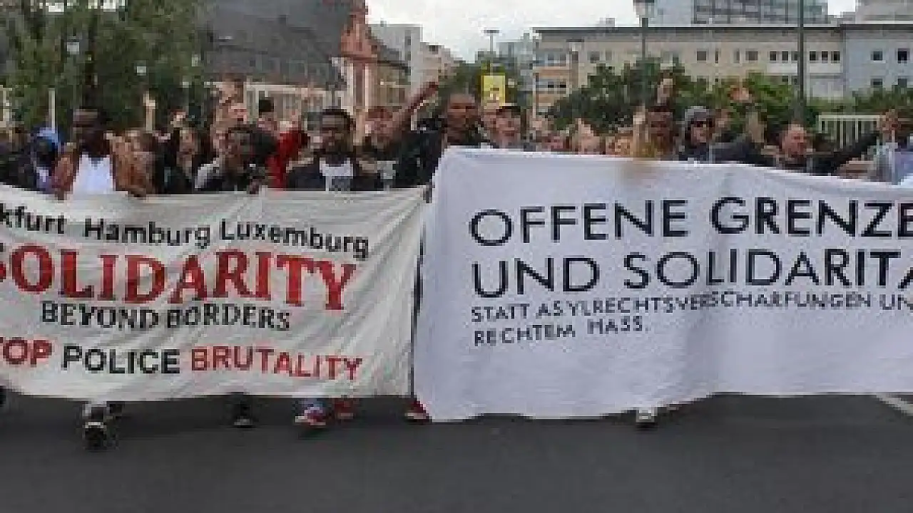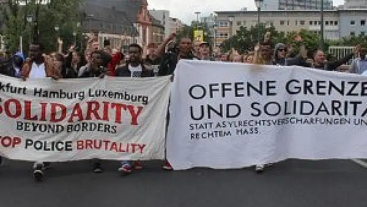Almanya'nın Frankfurt kentinde, hükümetinin yürürlükteki mülteci yasasının sertleştirilmesi yönünde teklif sunması, düzenlenen yürüyüşle protesto edildi.