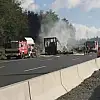Almanya'nın Bavyera eyaletinde yaşanan trafik kazasının ardından otobüste büyük bir yangın çıktı.