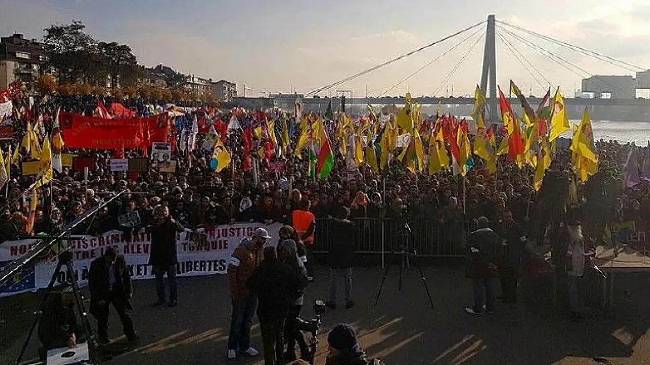 Almanya'nın Köln kentinde düzenlenen gösteride terör örgütü PKK yandaşı bir grup ile polis arasında çıkan olaylarda iki polis yaralandı, bazı göstericiler gözaltına alındı.