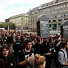 İki adet tabut ile temsili cenaze töreni düzenleyen aktivistler, Federal Meclis (Bundestag) önündeki çimenlik alanda küçük küçük çukurlar kazarak üzerine çiçek ve mumlar bıraktı. Yaklaşık 5 bin kişinin katıldığı protesto eyleminde ''AB öldürüyor'' sloganı atıldı.