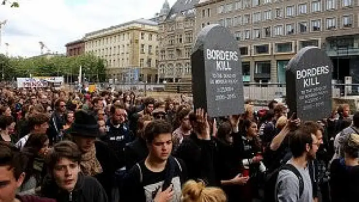 Göstericiler AB ve Almanya'nın sığınmacı politikalarını da eleştirdi.