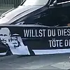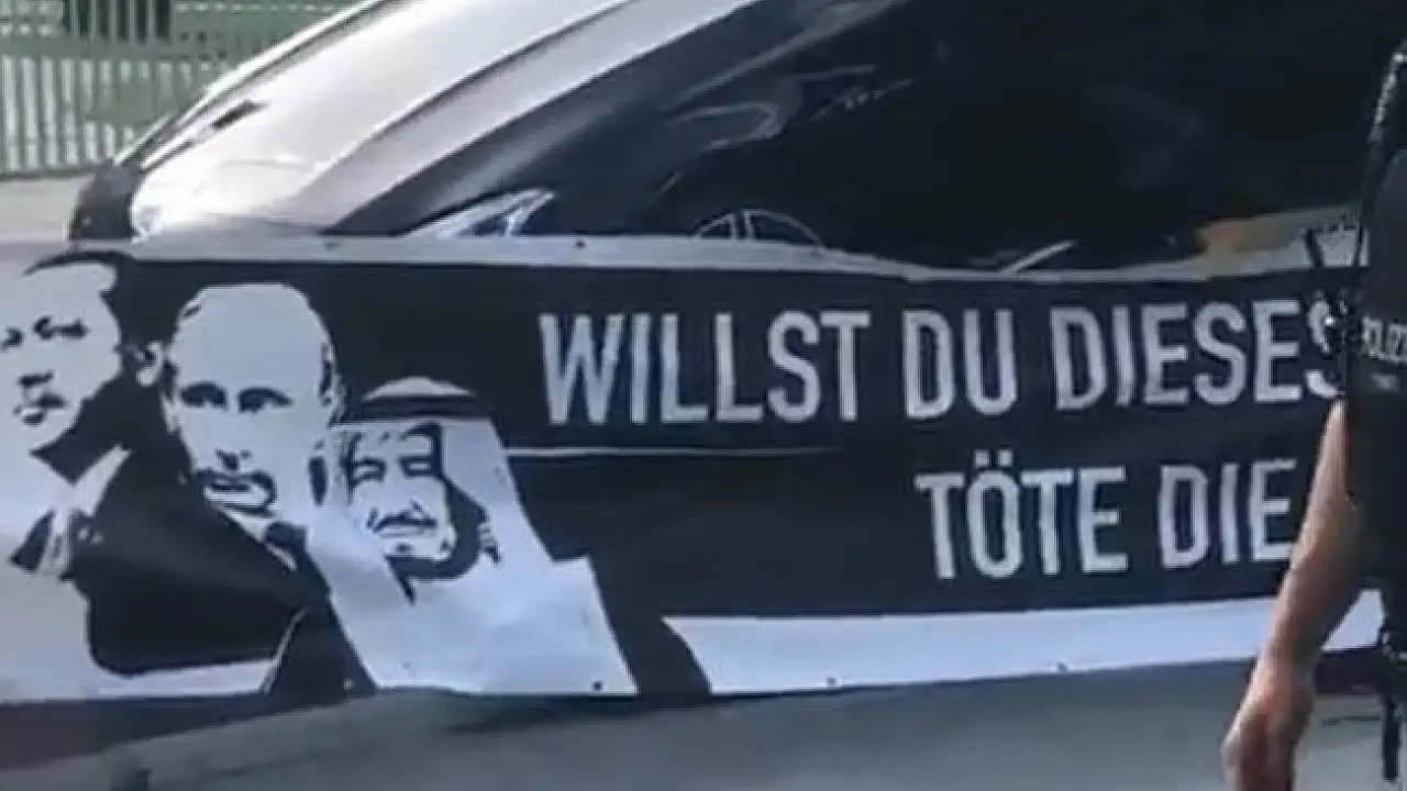 Alman polisi, Merkel'in başbakanlık binası önünde 'Erdoğan'ı öldür bu araç senin' yazılı pankartı açanlara müsaade etti.