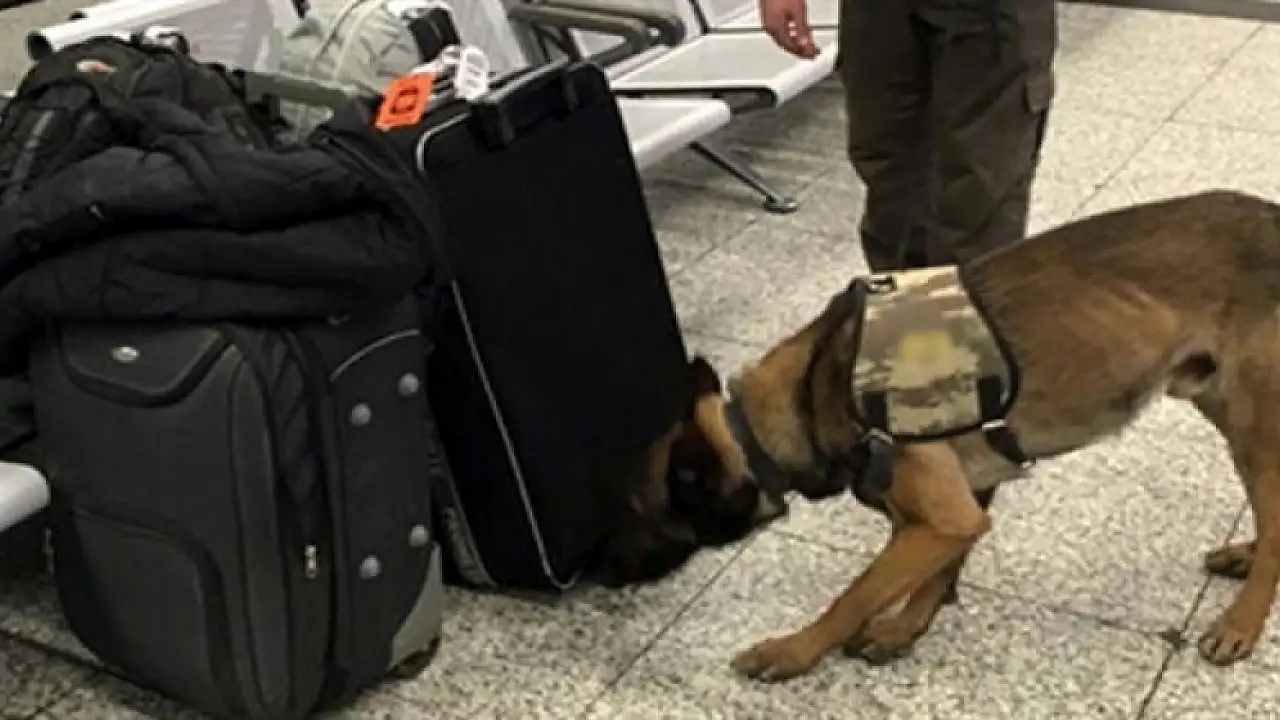 Almanya'nın Düsseldorf Havalimanı'nda İstanbul'dan gelen yolcuların valizleri skandal bir şekilde taciz edilerek polis köpekleriyle arandı.
