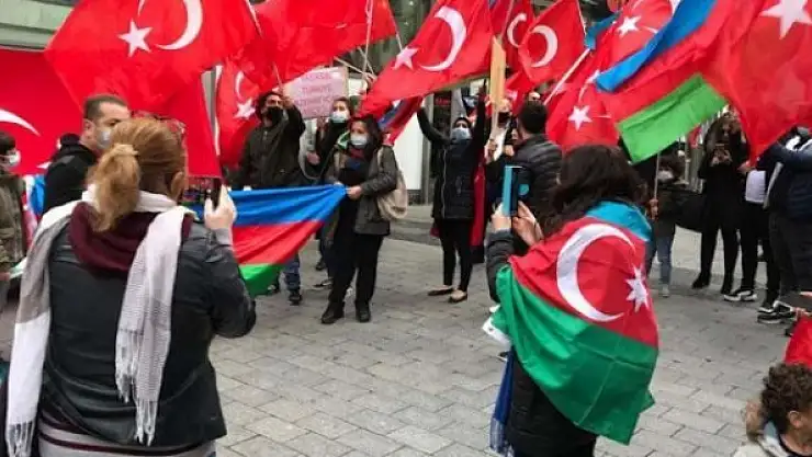 Almanya'da yaşayan Türkler Azerbaycan'a destek mitingi düzenledi