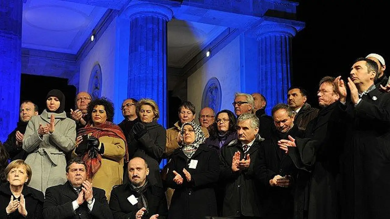 Paris’teki terör saldırılarını kınamak ve yükselen ırkçılık ile İslam karşıtlığına karşı çıkmak amacıylaAlmanya Müslümanlar Merkez Konseyi (ZMD) ve Berlin Türk Cemaati (TGD) tarafından"Birlik içinde, tavır alıyoruz" sloganıyla Brandenburg Kapısı önündeki "Pariser Platz" adlı meydanda sessiz gösteri düzenlendi.