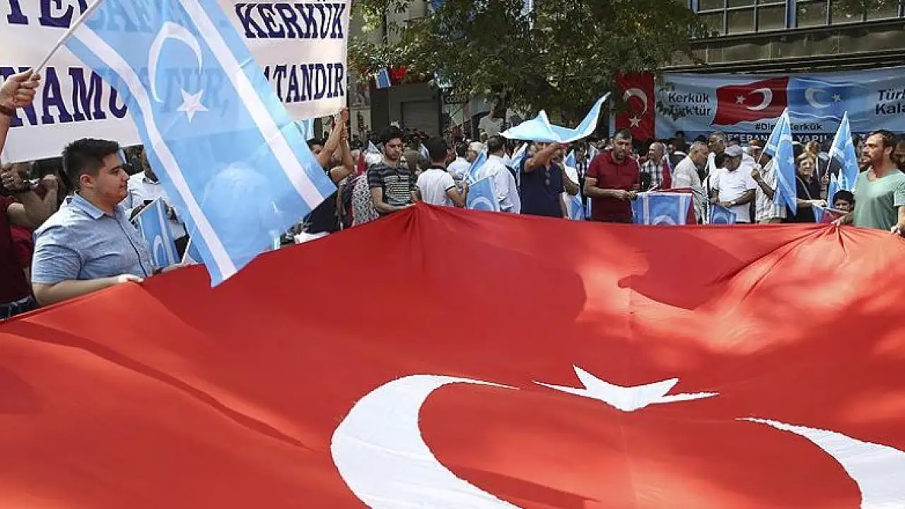 Türk ve Irak Türkmen cephesi bayraklarının açıldığı mitingde, "Kerkük Türk'tür, Türk kalacak", "Kerkük'e uzanan eller kırılsın", "Barzani şaşırma, sabrımızı taşırma" sloganları atıldı.