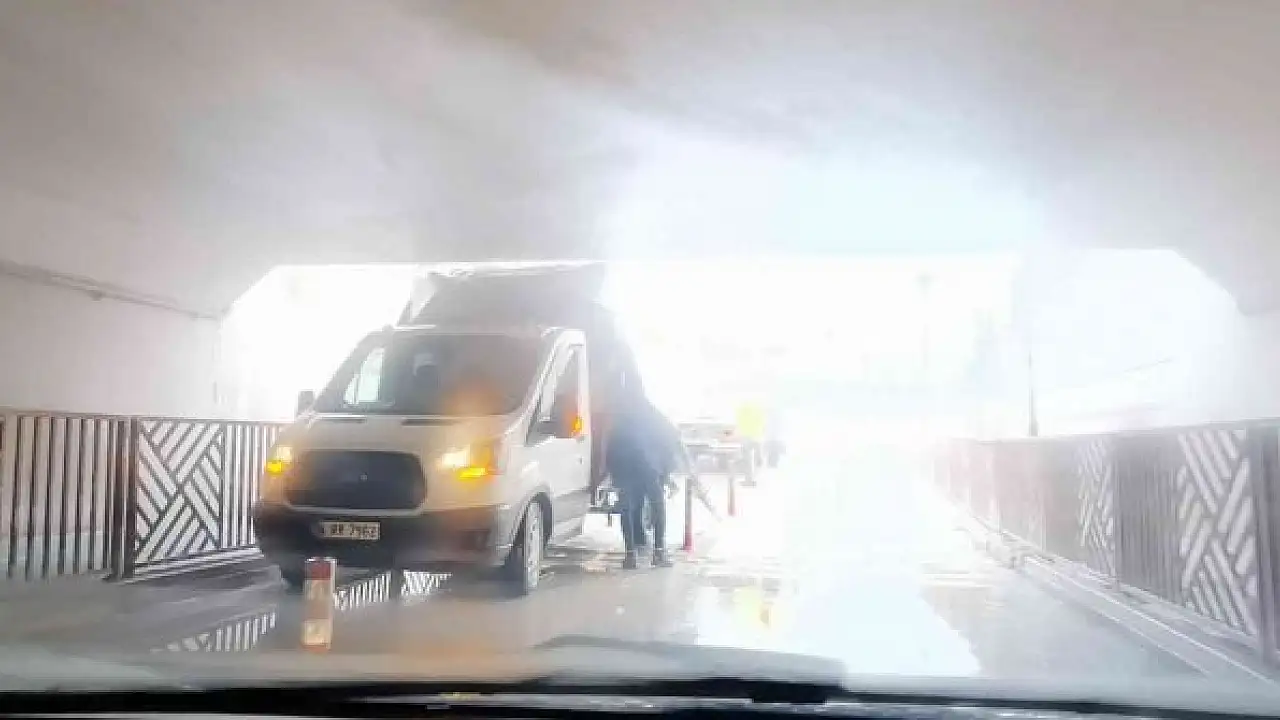 Alt geçide takılan kamyonetin kasası parçalara ayrıldı