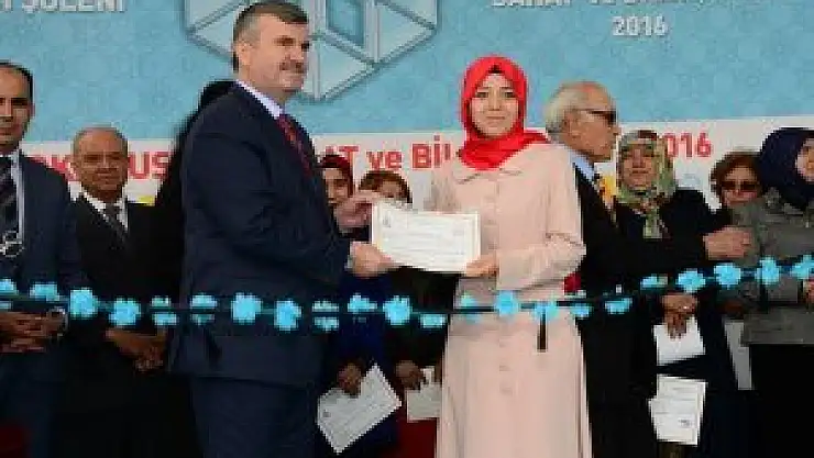 Kafkas ekibinin gösterisinin ardından KOMEK’te farklı branşlarda eğitim alan kursiyerler ile kurslara devam eden en yaşlı kursiyere sertifika verildi. Protokol mensuplarının hep birlikte gerçekleştirdiği açılışın ardından Konya Valisi Muammer Erol, Büyükşehir Belediye Başkanı Tahir Akyürek, ilçe belediye başkanları, AK Parti İl Kadın Kolları Başkanı Lütfiye Poçanoğlu, belediye yöneticileri ve KOMEK mensupları hep birlikte sergiyi gezdiler.