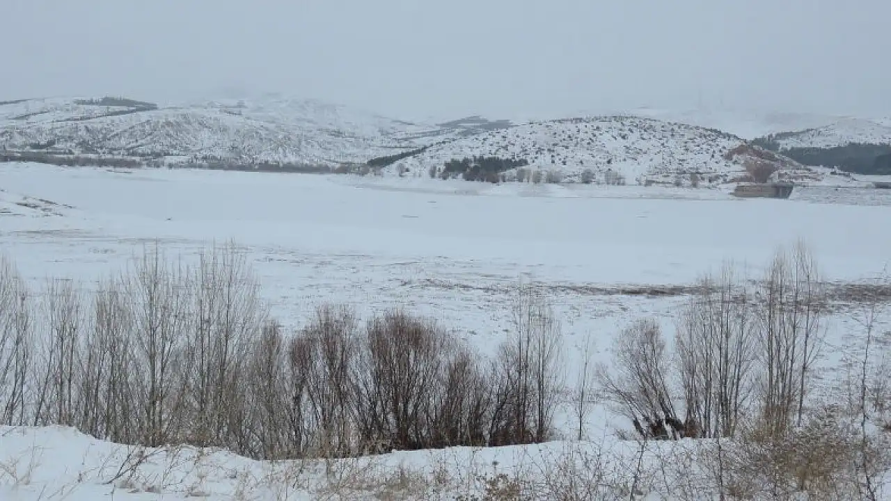 Baraj gölünün buz tutması üzerine yol kenarında araçlarını durduran sürücüler gördükleri manzarayı fotoğrafladı.