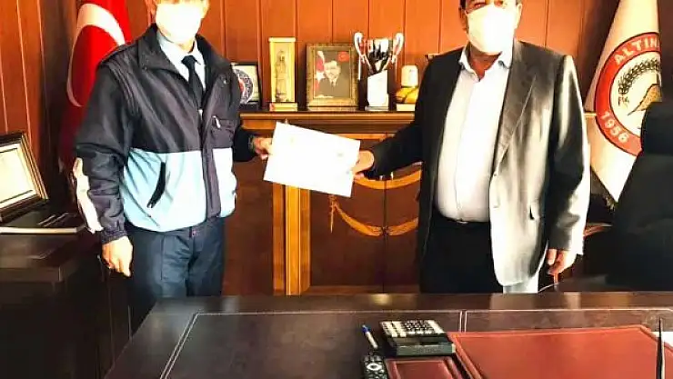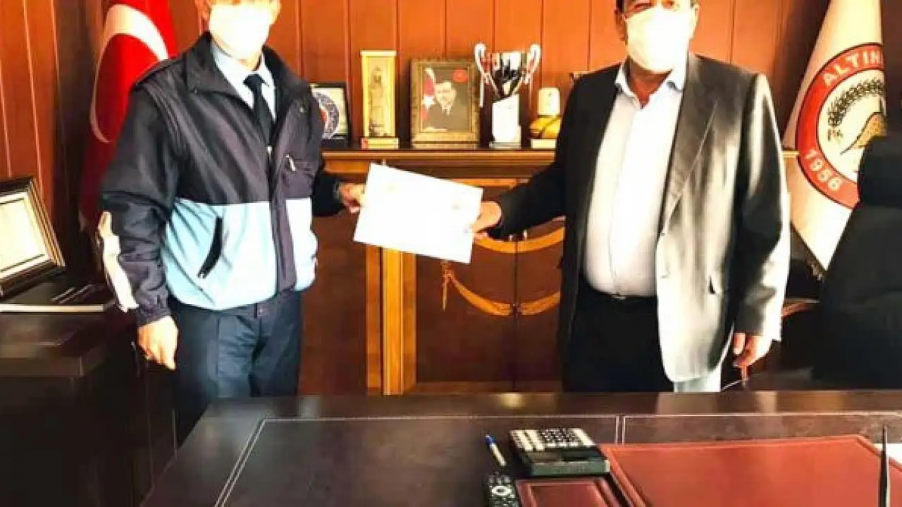 Altınekin’de vefa grubunda görev alan personele teşekkür belgelerini takdim eden Altınekin Belediye Başkanı Muharrem Dere, “COVİD-19 karşı gece gündüz vatandaşlarımıza hizmet ederek ihtiyaçlarını karşılama ve maske dağıtımında sosyal vefa grubunda görev alan personellerimize belgelerini teslim ettim. Çalışmalarından dolayı kendilerine teşekkür ederim” ifadelerini kullandı.