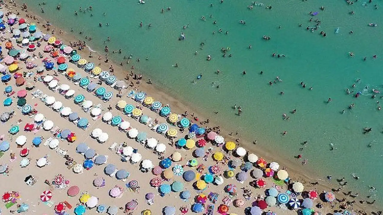 Halka açık plaja vatandaşların güneşten korunmak için getirdiği farklı renklerdeki şemsiyeler, altın rengi kumlar üzerinde renk cümbüşü oluşturuyor. Plajı yer yer tamamen kaplayan şemsiyelerin hava çekimlerindeki görünümü, kumun üzerine sıralanmış boncukları andırıyor.
