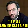 İletişim Başkanı Fahrettin Altun, 'Milletin iradesine darbe vurularak, demokrasinin, insan haklarının hiçe sayıldığı 12 Eylül, demokrasimizin kara bir lekesidir' dedi.