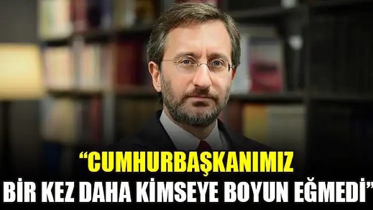 İletişim Başkanı Altun, 'Cumhurbaşkanımız bir kez daha kimseye boyun eğmedi ve hükümetimizin, ülkemizin egemenliğini ve bağımsızlığını korumak için gerekeni yapmaya hazır olduğunu bütün dünyaya gösterdi.' dedi.