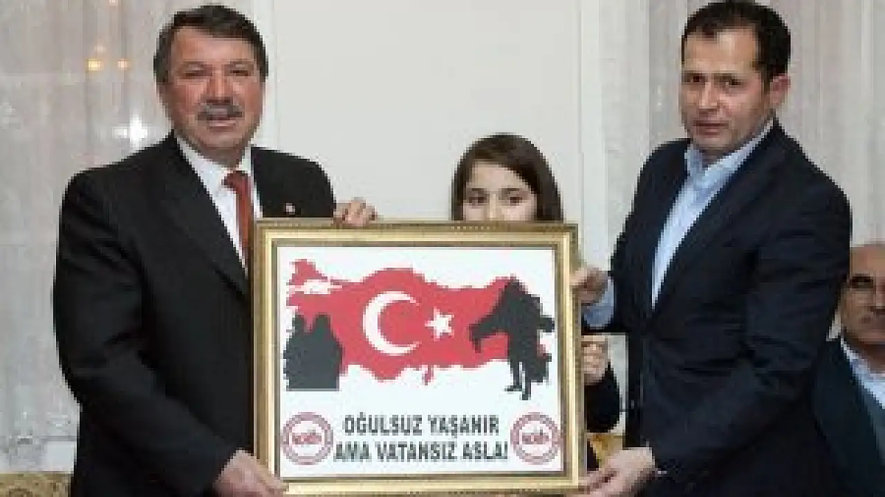 Konya Şehit Aileleri Derneği Başkanı Recep Pekdemir ziyaret sonunda AK Parti Konya Milletvekili Ziya Altunyaldız'a tablo hediye etti ve birlikte fotoğraf çektirildi.