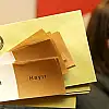 a- Seçmen, sandık kurulunca kendisine verilen, beyaz üzerine “Evet”, kahverengi üzerine “Hayır” ibareleri bulunan iki ayrı renkten oluşan birleşik oy pusulası ve “Evet” mührünü alarak oyunu kullanmak üzere kapalı oy verme yerine girer