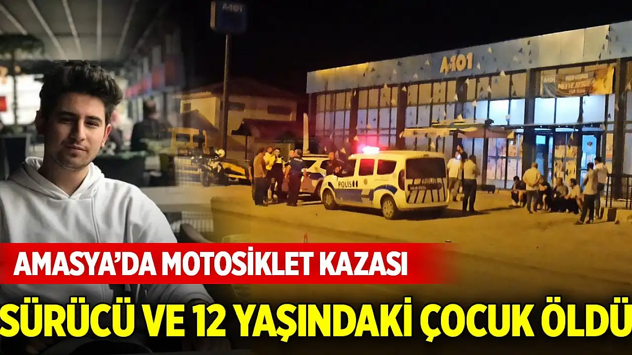 Amasya'da, yolun karşısına geçerken motosikletin çarptığı Şamil Çalışkan (12) ile sürücü Koray Özkalender (22) hayatını kaybetti.
