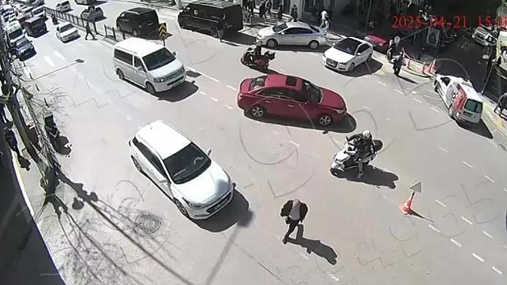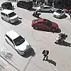 Amasya'da 10 metre uzaklıktaki yaya geçidi yerine koşarak kavşağın ortasından geçmeye çalışan yayaya otomobil çarptı. Kaza anı güvenlik kamerasını yansıdı.
