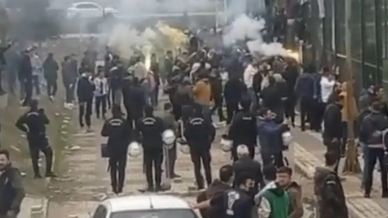 Bu anlar cep telefonu kamerasına yansırken, tribünlerin fişeklerle kırmızıya boyanması dikkat çekti.