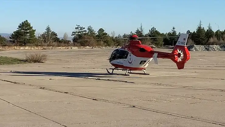 Durumu ağır olan hasta için hava ambulansı talep edildi. Atar, ilçedeki Eti Alüminyum AŞ'nin bahçesine inen hava ambulansına taşındı.